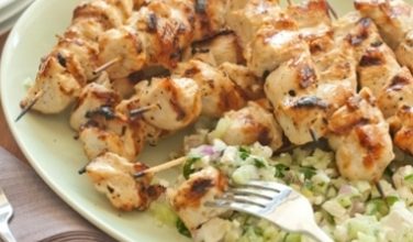 كباب الدجاج مع سلطه الفيتا بالخيار