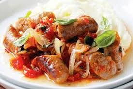 السجق مع اللحم وصلصه الطماطم المميزة