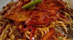 مكرونة مع الدجاج المقلي